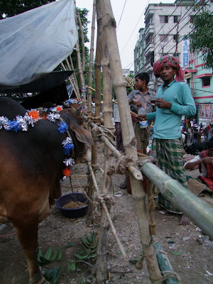 di forma allungata che delinea il bordo della via principale che sta di fianco, Legati a staccionate di bambu fanno bella mostra alcune centinaia di bovini, in attesa di un nuovo padrone. L'acquisto è condizionato dal costo che per la maggior parte dei bengalesi è impresa molto ardua, Servono a seconda delle dimensioni dell'animale, dalle 10000 taka per gli esemplari di piccole dimensioni fino ad arrivare a 300000 taka ossia tre Lak per quelle piu grosse.